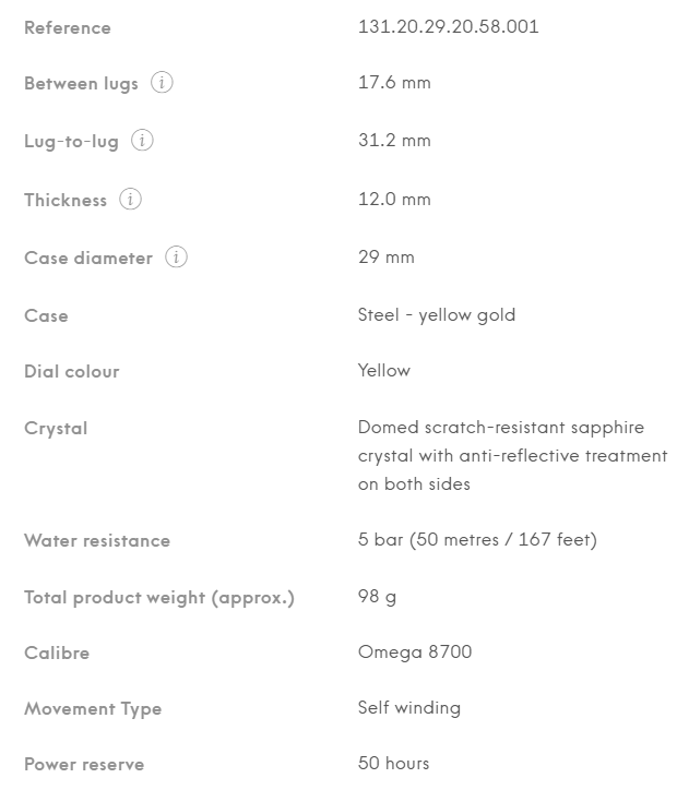Omega Constellation 29 mm, Stainless steel - 18K yellow gold case and yellow gold bracelet in stainless steel - 131.20.29.20.58.001