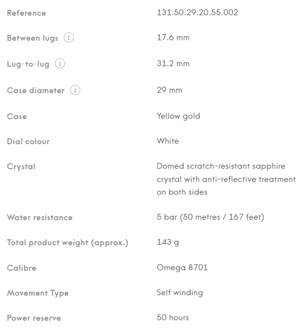 • Omega Constellation 29 mm, 18K yellow gold case with 18K yellow gold bracelet - 131.50.29.20.55.002