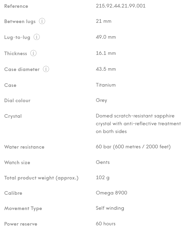 • Omega Seamaster Planet Ocean 600 m 43.5 mm, titanium case with rubber strap - 215.92.44.21.99.001